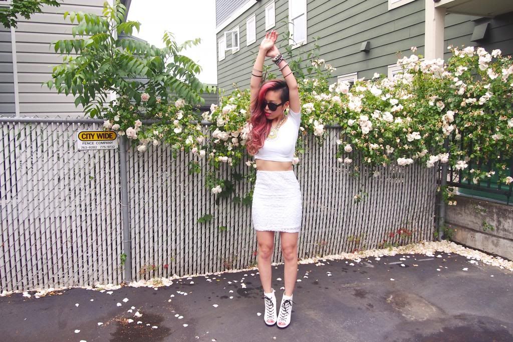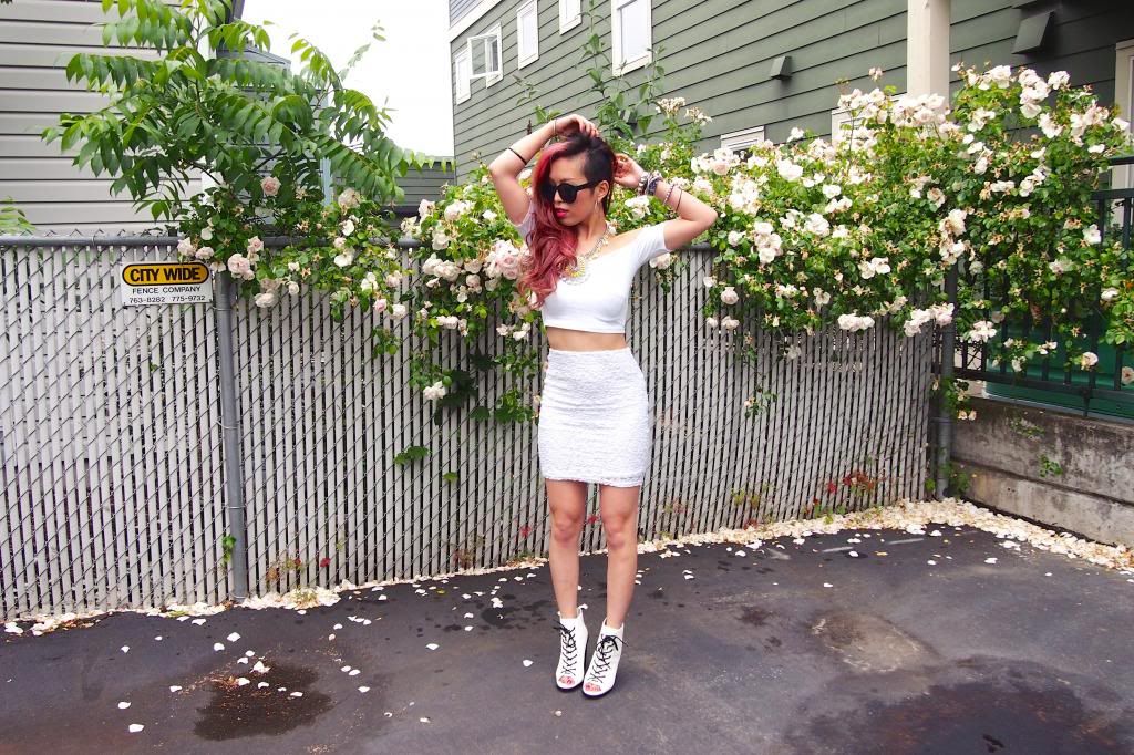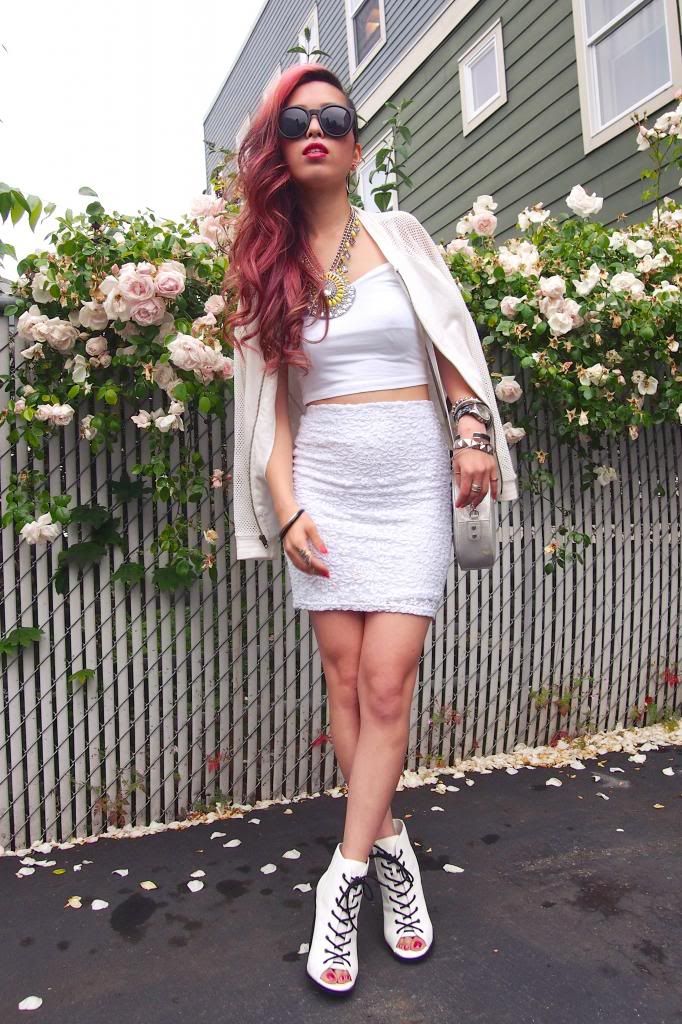 I am so happy that I finally have a chance to share this all-white sporty-inspired look with you guys! I thought I lost the SD card that had the photos on it, but I found it as I was packing for my recent move!! It sucks to lose something, but the moment when you find, it is such an absolute relief.I wore this look a month ago when I went to a fashion event at Zebra Club! In my previous post, I mentioned that I want to enjoy the bright summer days by wearing with vivid colors as much as possible, and I think whites can be counted as vivid, too.