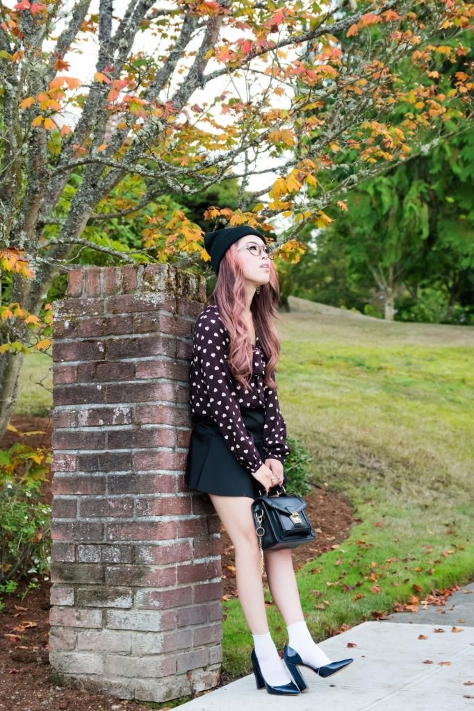 I am the type of girl who easily becomes obsessed with anything that is super adorable and eye-catching, and this heart print blouse is no exception. The texture is very soft and silky, the cut is easy-fitting, and the burgundy color makes this blouse look oh so elegant -- it is surely a perfect piece for the season. It's always good to have a blouse in your wardrobe that can be worn for both work and play, and this one is so versatile, as it can easily be dressed up or down.