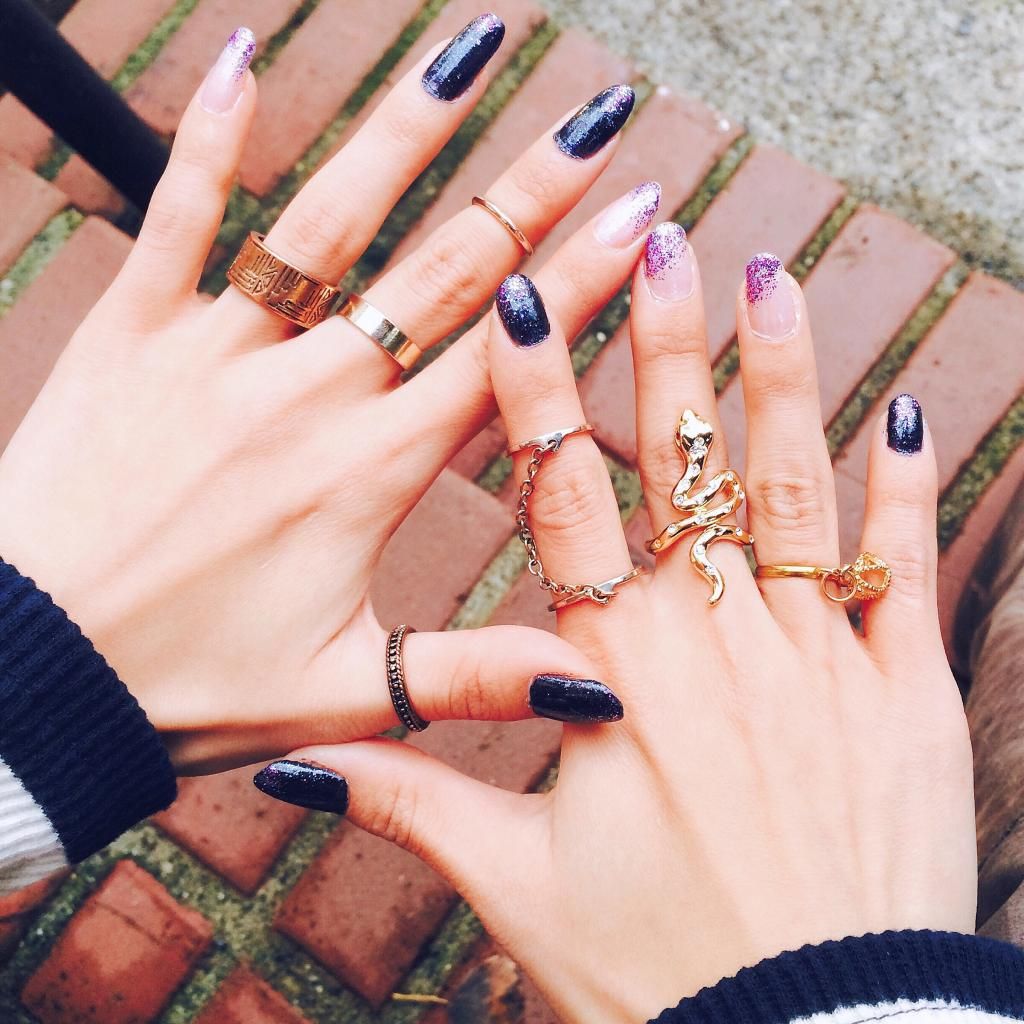 My current #DIY nail situation, loving the navy color with a little sparkles!
