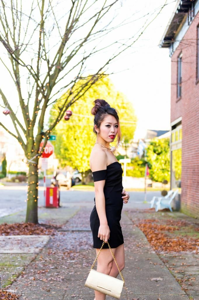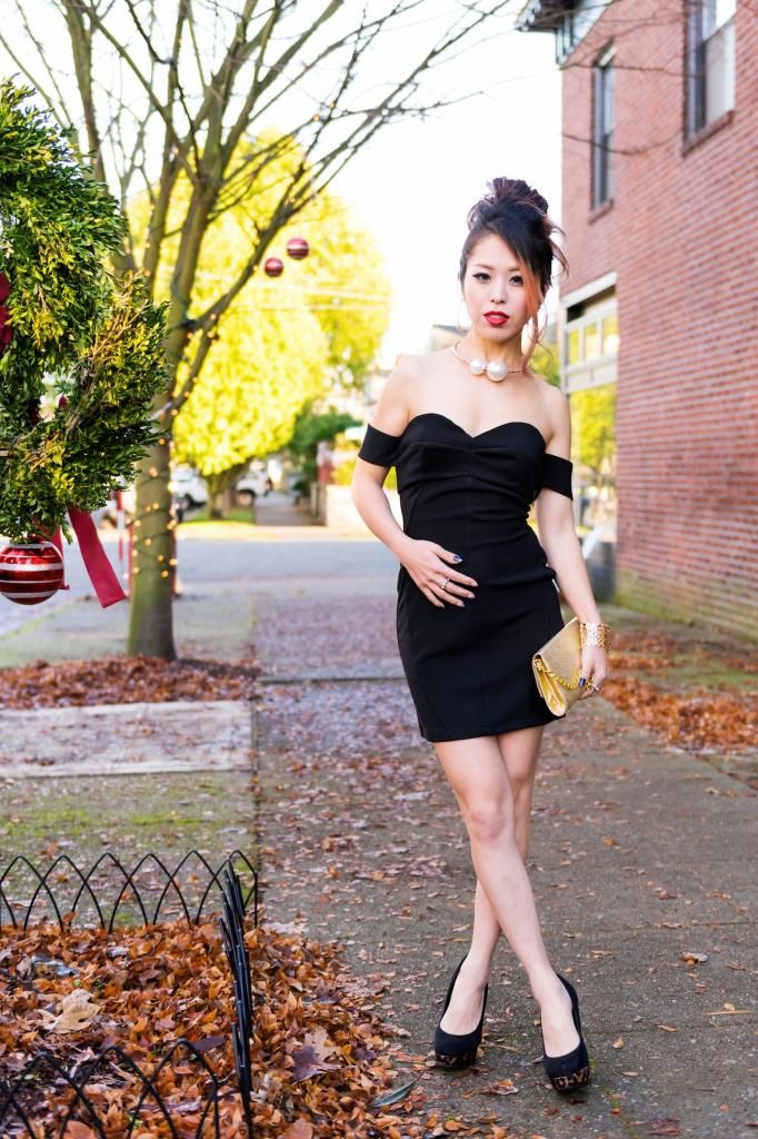 I am so happy to have this super lovely LBD from Tobi, and this might just be the perfect dress for NYE! This is certainly one of the best LBDs in my closet, to be honest with you. Since I have small breasts, I usually feel uncomfortable wearing a strapless dress, but I chose this one because it has little cute off-sleeve cuffs that help draw your gaze away from my chest area. At the same time, they provide added support to keep my top in place, even when dancing! These sleeves make this dress even more appealing and alluring. I love how the dress looks from the back, too. It is a low & open cut, yet it does not give too much away. I just can't get enough of this dress!
