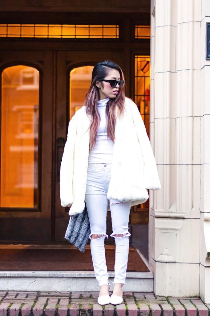 One of the street trends that has caught my eyes these days is wearing all white ensembles with winter layers. People are inclined to wear dark colors during this season, and I am definitely one of them. It's bold and sophisticated and I don't think it never goes wrong with it however you style in. Nonetheless, it's fresh and fun to switch up your mind, playing with colors once in a while, and we also need to brighten up the darkest days of the year! Whites are definitely great color option to choose from! I adore the sleekness and crispness of the hue, and it will surely freshen up your mind once you put on because I actually felt revitalizing while wearing this look!