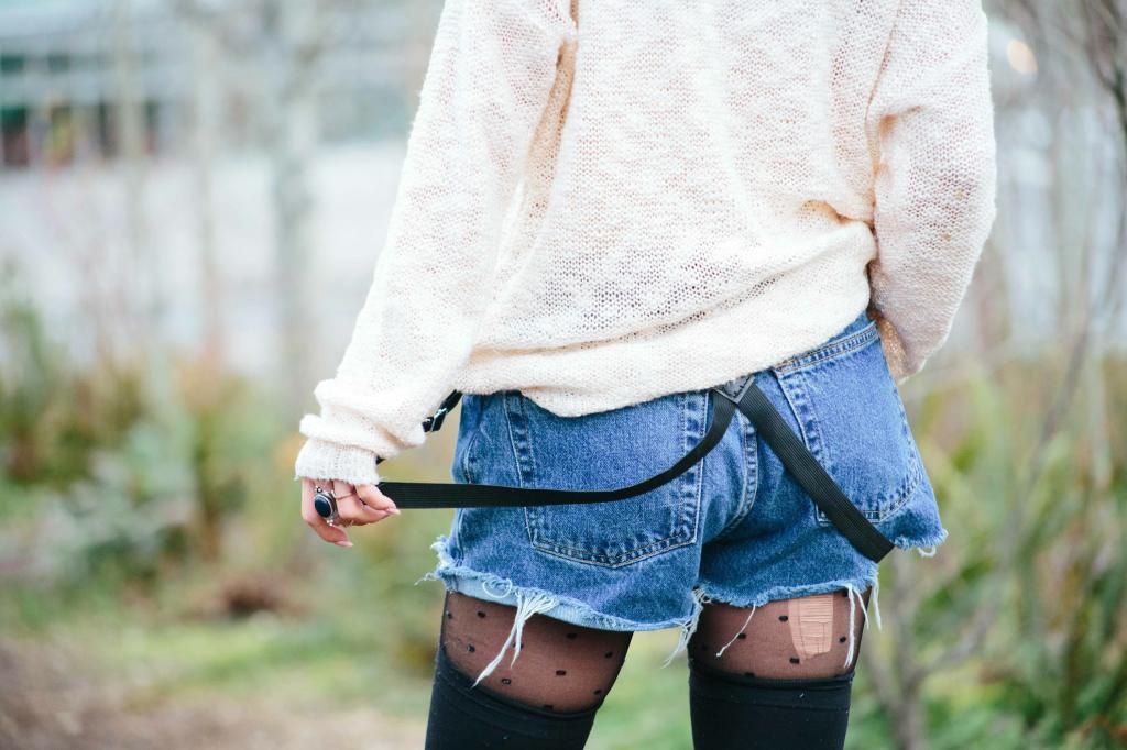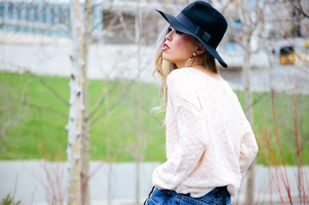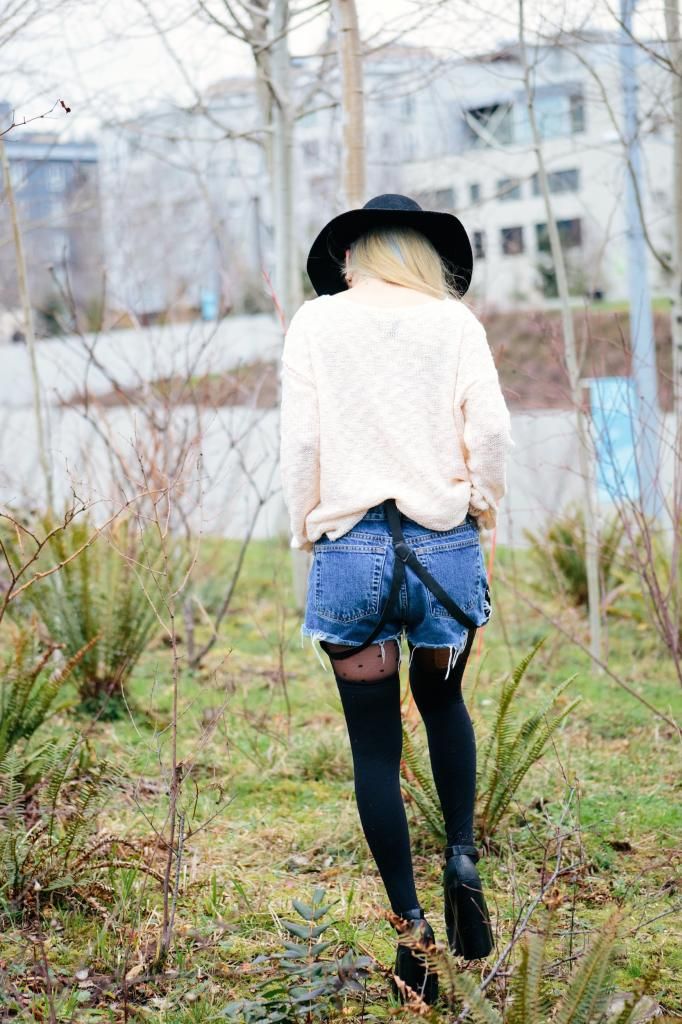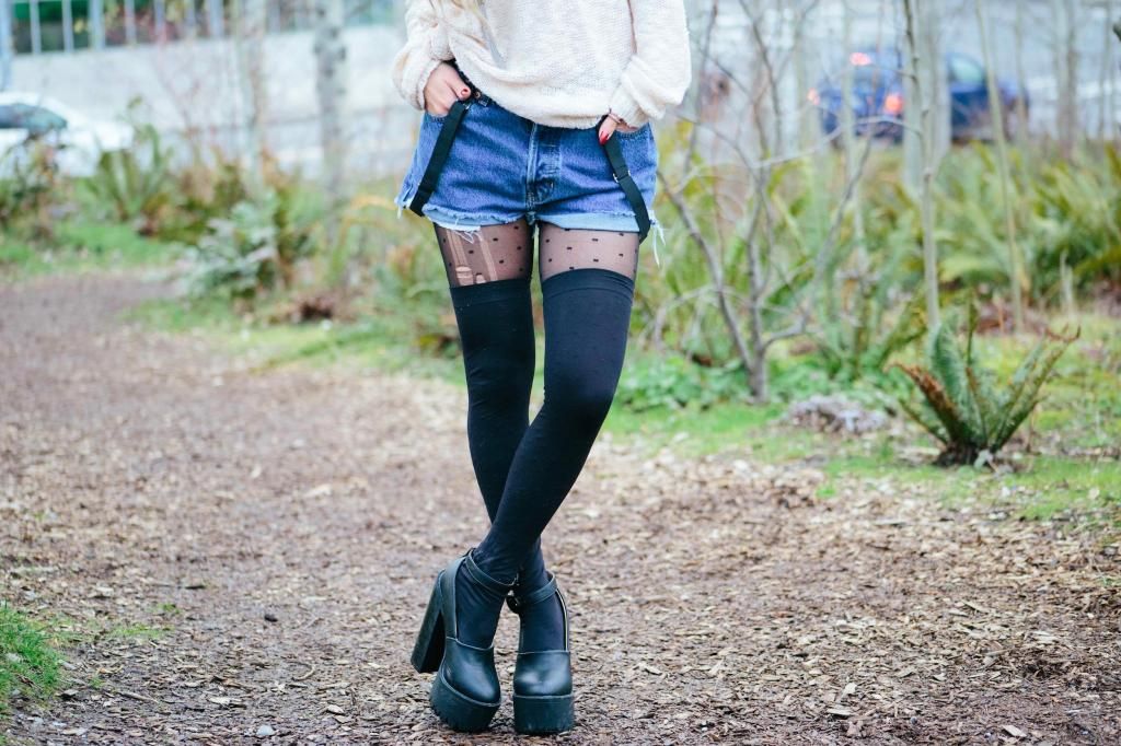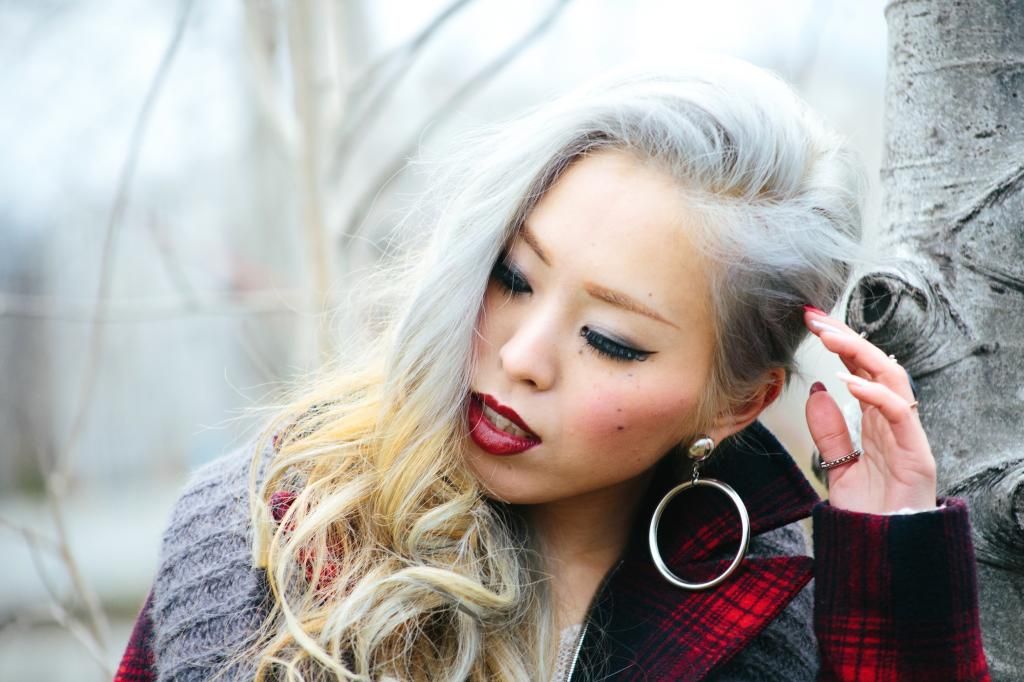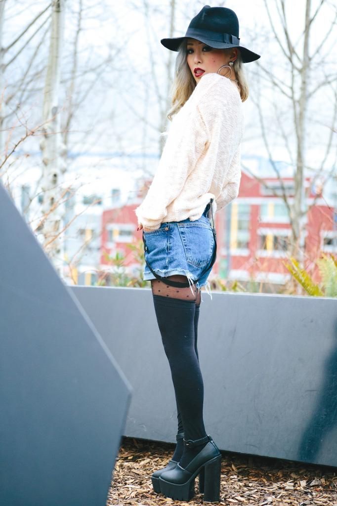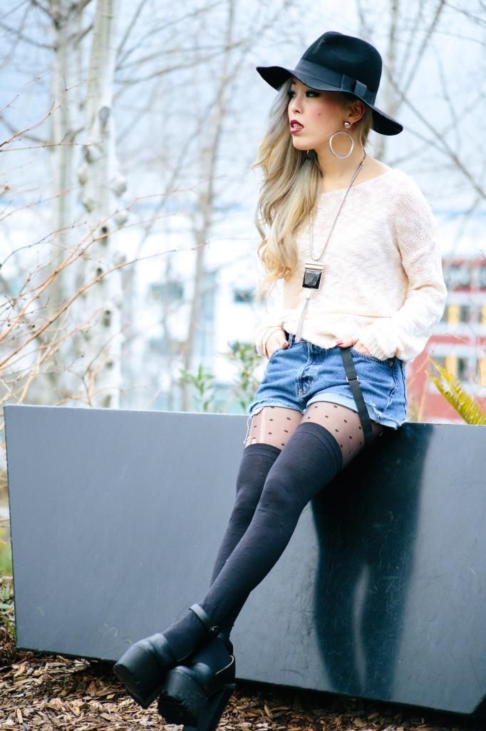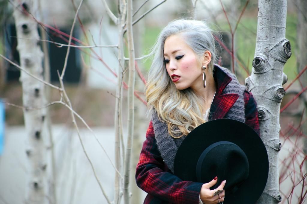 Plaid items are always perfect to create a grunge/rock style and can't get enough of how they can instantly add a pop of color to the look! Luckily I had this super lovely plaid peacoat! It's old but I can't get rid of this old cute number! So I created this look around it. I am a kind of girl who wears shorts during winter. Yes, some people probably call me crazy. Yet if you layer with tights and over the knee socks, you rock on! To emphasize the vibe, I purposely put on a suspender hanging down and paired with chunky platform shoes with lots of silver jewelry! I picked wide brimmed hat recently got from Romwe and dark toned red lip glaze from AVEDA as my finishing touch!