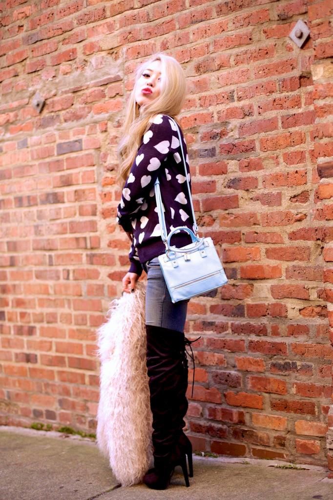 Today, I am showing off a combo that is currently a favorite of mine. Can you guess which items make up that combo? Yes, a fur coat, skinny jeans, and over-the-knee boots. I've been seriously obsessed with this super adorable fur coat I snagged on sale a few months ago at ZARA, and I practically can't take it off. Then, I got these thigh-high OTN boots recently from JustFab. I once saw how flattering the skinny jeans and OTN boots combo was on Olivia Palermo, so I definitely wanted to try if for myself. I LOVED IT!
