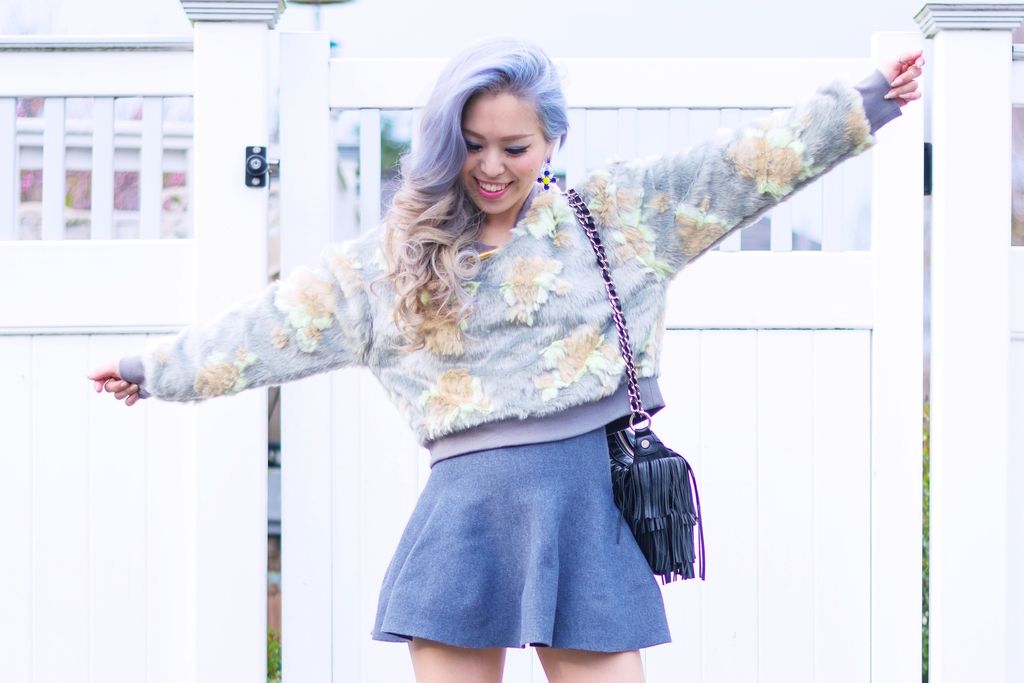 When Fevrie sent me this cute floral print sweater ( really sad to say that this piece is an exclusive item which is cannot be bought :( ), I came up with this ensemble in a second. Chic and cute! Floral pints continue to grow in popularity for this spring/summer, and wearing gray for spring is still fun and in style. So this sweater is perfectly divine! Especially when I simply want to throw on a piece and don't wanna wear anything on top of it. Although I initially wanted go with the same color family from head to toe, unfortunately I don't own any gray pair heels. So I picked these cute sky-high platform heels. I am actually pleased with how these shoes give me more height and elongate my legs. Plus adding a black fringed bag to match these heels really helps balance the whole look. As for jewelry, these Rocksbox earrings and Petite Sesame necklace has been in heavy rotation. (Use "aikasloveclosetxoxo" to get your first month of jewelry FREE!) I appreciate we can finally celebrate showing off lovely accessories more as it gets warmer!
