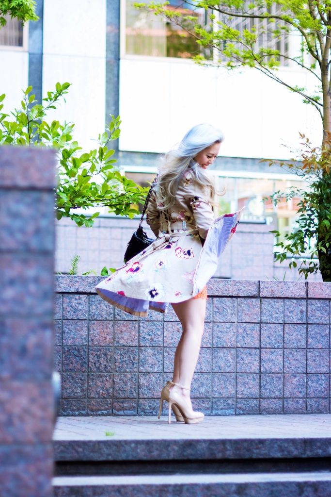 What's your all-time favorite piece in your closet? For me, I would surely choose this pansy-printed trench coat with corset lacing details on the back! It didn't take me so long to fall in love with it due to its extraordinary attributes. The quality is unbelievably amazing, and what makes this coat so adorable is that it's a classic trench with a little bit of flare at the bottom. I love the blue stripe print lining - a great contrast with the flower print, right? I scored this cutie a few years back durgin Black Friday at Anthropologie. Since then, I always look forward to spring just because I can wear it! It gives me a lot of happy feelings, which makes me want to twirl like in these pictures above!