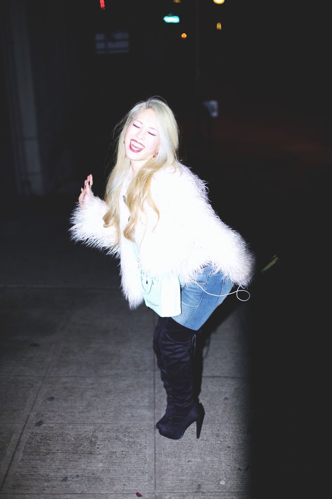 Thursday means #tbt, right guys? James and I did some unplanned night shoot with a flash light on the day we shot this outfit at Pike Place Market a while ago. Although we were just playing to take snaps, I am actually so stocked with the results. I edited the pictures adding a film filter to make them look as if taken by a film camera. What do ya think?If you follow me on social media, you know what my current hair looks like. It's a kind of gray (I seriously don't know what to call this color) and I just can't get over it. But in general I naturally end up loving whatever color I go for, even the colors that fade out later on. When you keep constantly changing your hair color, you sometimes don't remember what your last hair color was. So, that happened to me and I totally forgot that I was a blondie after my old silver hair was decolorized until I accidentally found this set a few days ago. I used to dream of having a blond hair when I was a teenager. So funny I really didn't think I would rock the color during my late 20s. I guess I wasn't courageous enough to go wild?