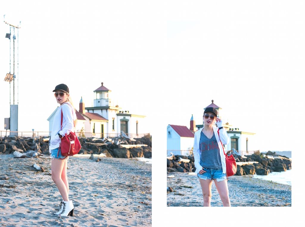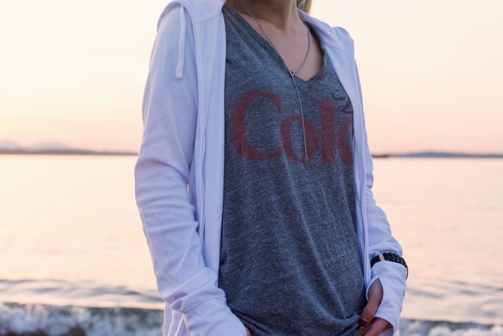 Discovery Park was a perfect place to shoot this look because the hoodie completely helped me protect from the cold of the shores as the sun went down. Since it's super light, I was able to stow it in my bag until the air got chilly. Even though I adore warm and sunny days in Seattle, I always have to consider bringing a jacket with me for the night. So this hoodie is gonna be a major life-saver for me. On top of that, it's definitely a great piece for whenever you play sports or work out. All of my sports hoodies are thicker and a bit bulky, and they are sometimes too annoying to hold or too hot to wear in action.