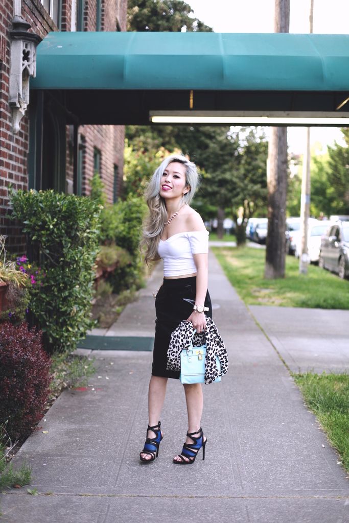 For today, I styled a look that has a feminine touch by pairing an off shoulder crop top and midi skirt. Off-the-shoulder tops are so pretty and trendy right now and if you need a right amount of sex appeal, they add subtlety by showing off your decolletage. If you are petite like myself, it's a great top you should have in your closet, especially in seasons where you don't need any outerwear to cover it!