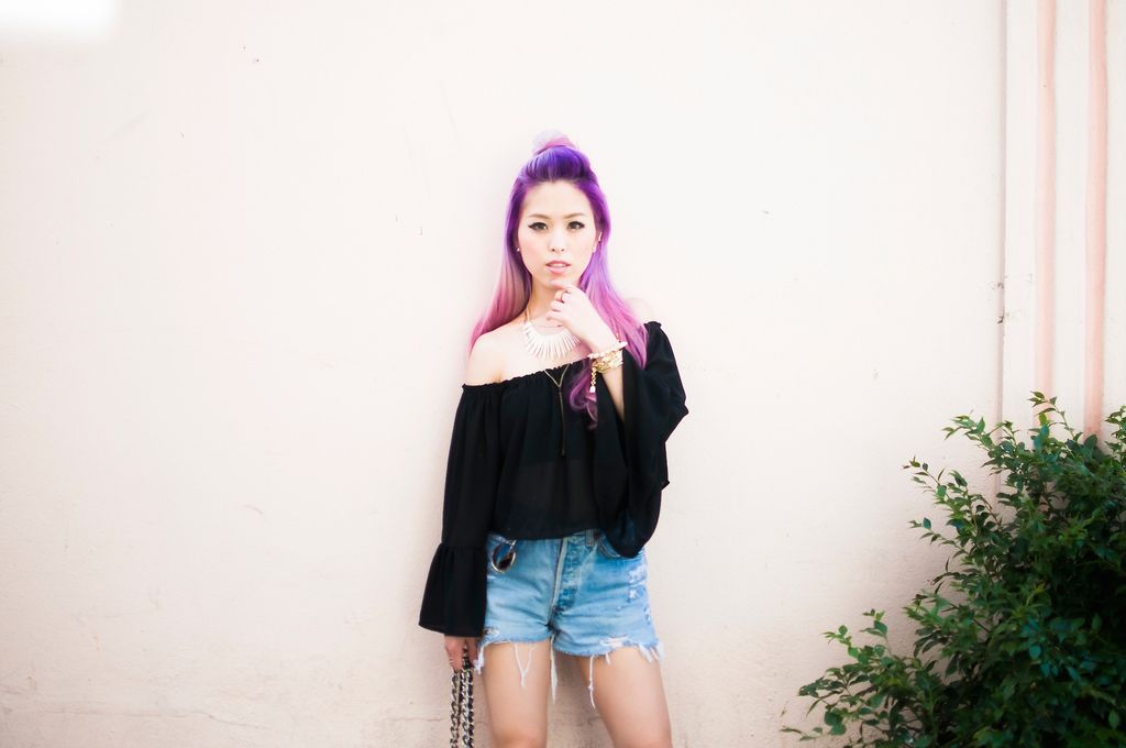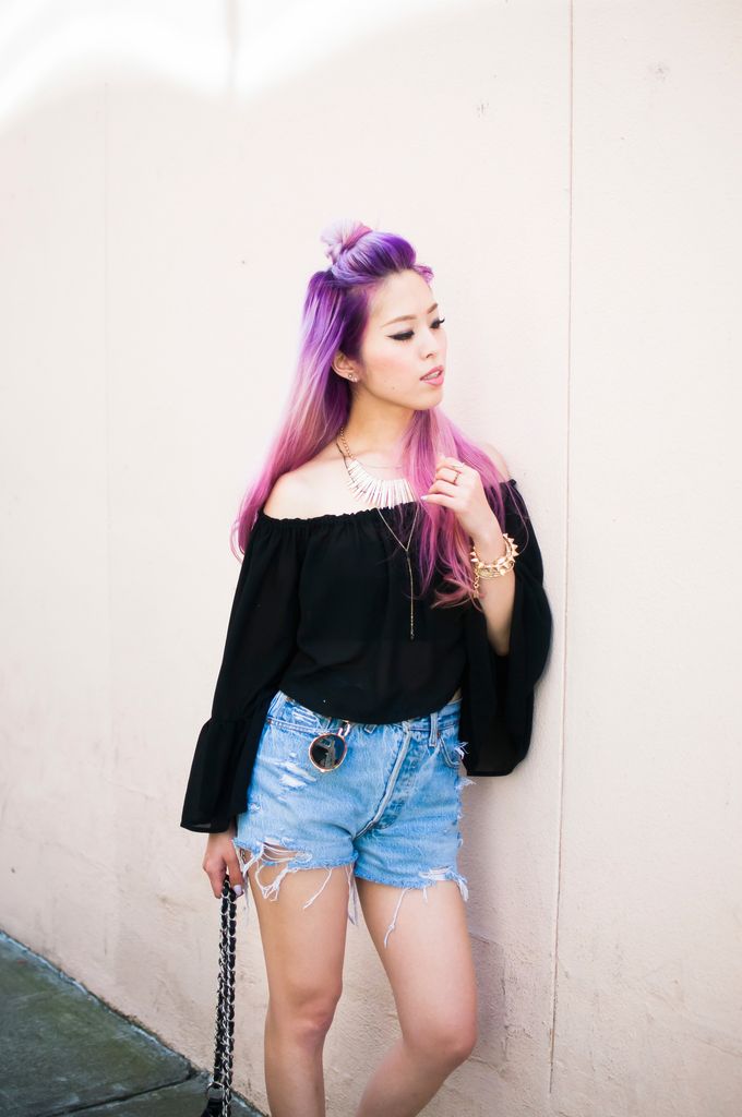 Here is the second look featuring Style Moi, one of my new beloved fashion online destination. Can I tell you something? The word can't express how much I love this versatile oh-so lovely off shoulder top!!!!! I'd been dying to get my hands on a summer top like this, but I just didn't have a chance to encounter a piece I really want to wear or fit my petite body perfectly. As I mentioned on the previous post, they offer a variety range of size options, and I got it in XS which is super hard to find the size in the US clothing stores.This top is so soft and comfortable, and you can rock it from day to night. I even used as a cover top when I went to beach thanks to its sheer fabric!! On top of the off-shoulder design, these bell sleeves are what makes this top much cuter!
