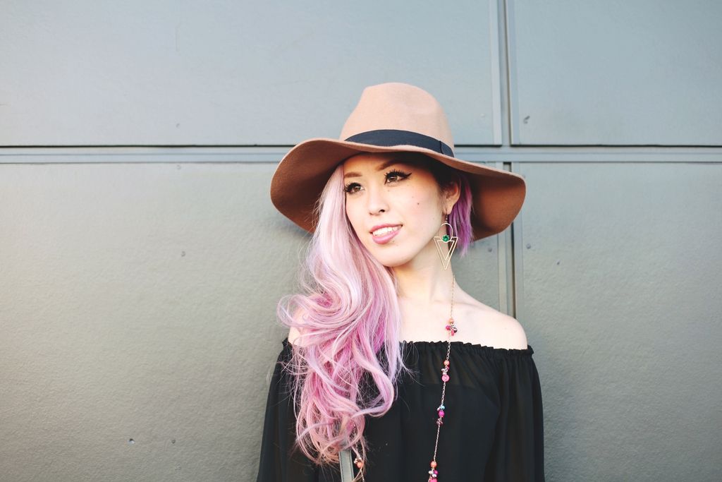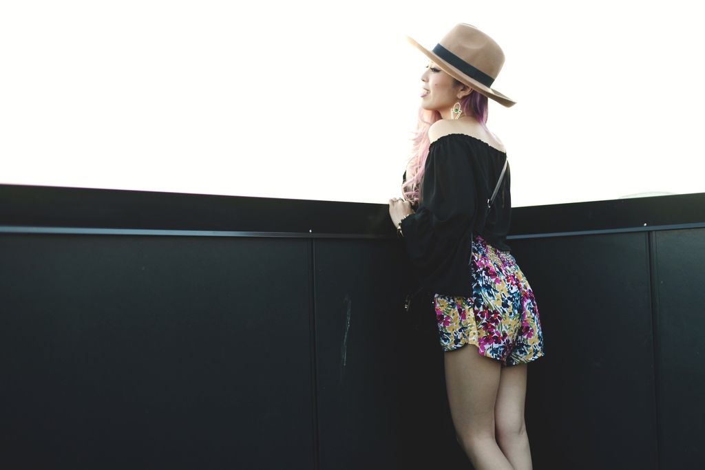 This time, I styled it with super light floral shorts and topped it off with a camel fedora and platforms to match.