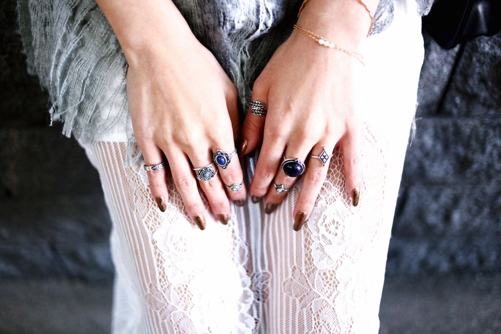Since the late summer, I showed the all-grey look because I love the ensemble in addition to all-white and all-black! My obsession still keep growing, and that's why I paired the scarf with the grey sweater. Since the scarf is light grey, I wanted to keep the same tone palette into the look. But I didn't wanna wear the same grey maxi skirt I was wearing for the all-grey outfit post. Also, I didn't have any bottom in blush/pastel. So I decided to wear my white lace dress as a perfect lace midi skirt, and really love how the look turned out! If you follow me on Instagram, you've seen me a few times already in these bold cobalt blue booties from JustFab via ShoeDazzle! They are my serious obsession right now! Although these babes are NOT as versatile as black boots due to the vivid color, it's definitely a perfect pair for a touch of playfulness, especially now that the weather is getting gloomy!!