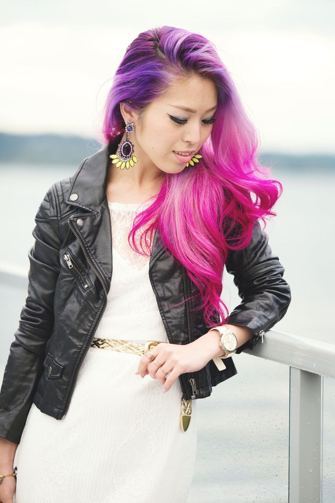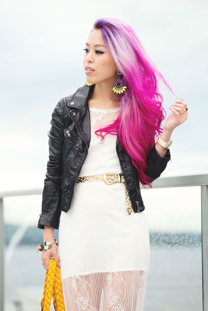 Midi length is sometimes very tricky to style in, especially if you are short like me. Paring nude heels is always the best solution. I love how this feminine look is changed up to be more edgy once putting on a biker jacket!! Which do you prefer, with or without?