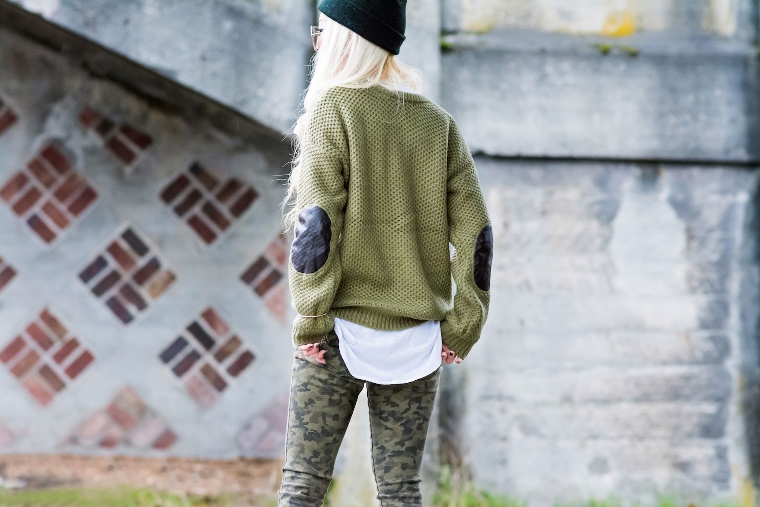 I've noticed a lot of people are becoming so into non-colored sweaters, and I am not an exception. I do love sweaters in grey, white, and black! They are ridiculously stylish. Yet, sometimes I find myself get tired of wearing those, so I always seek for perfect warm colored sweaters. Then, right on time, I was reached out from Idol Collective (Yay for a local small business!! ), and luckily they carry this amazing army green sweater with elbow patched details! It's extremely cozy and such a playful piece! Whenever I pick a sweater, I always go for one size or 2 size up for an oversized silhouette.