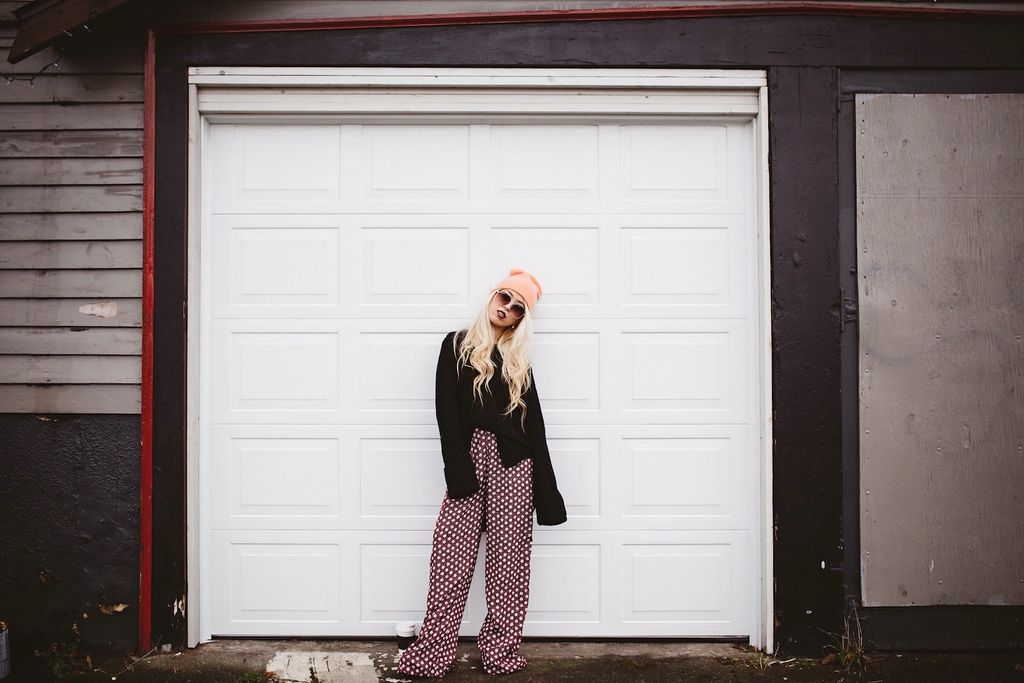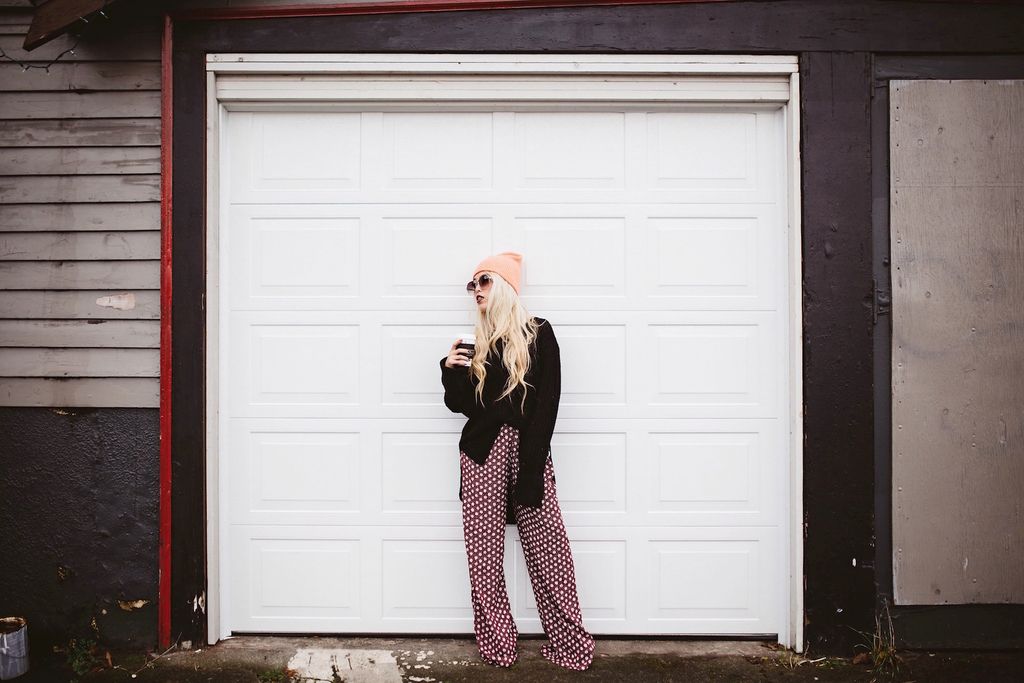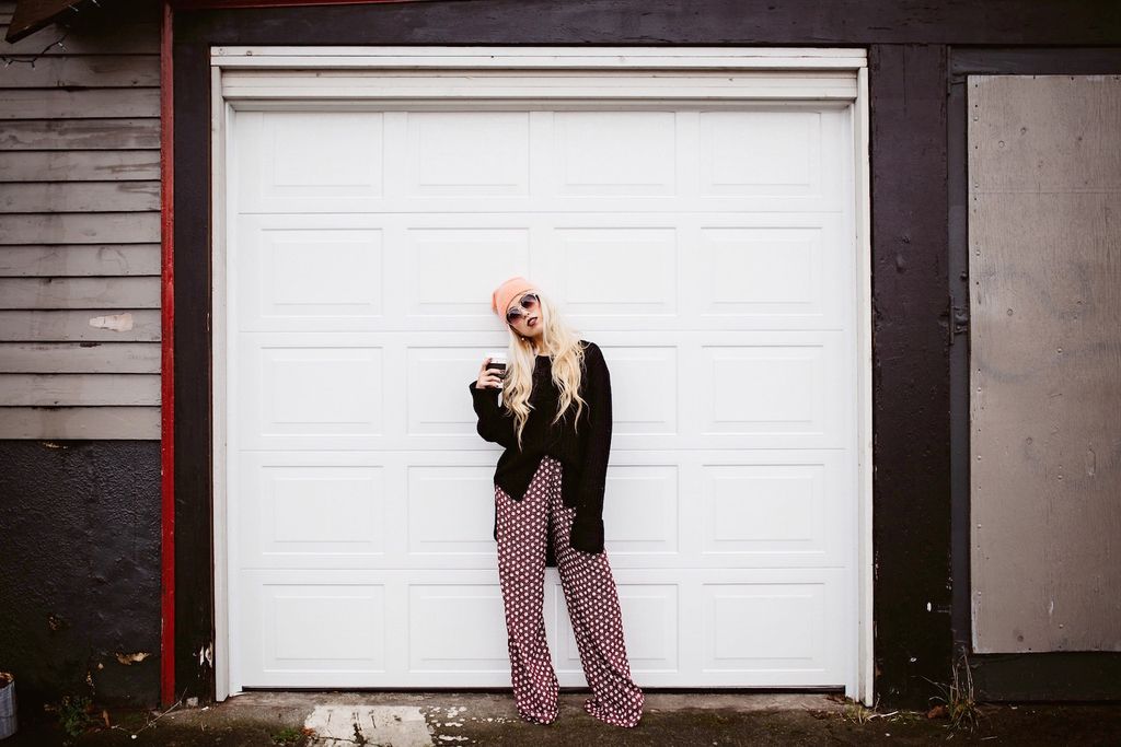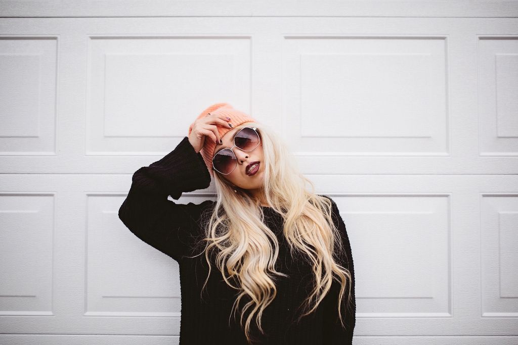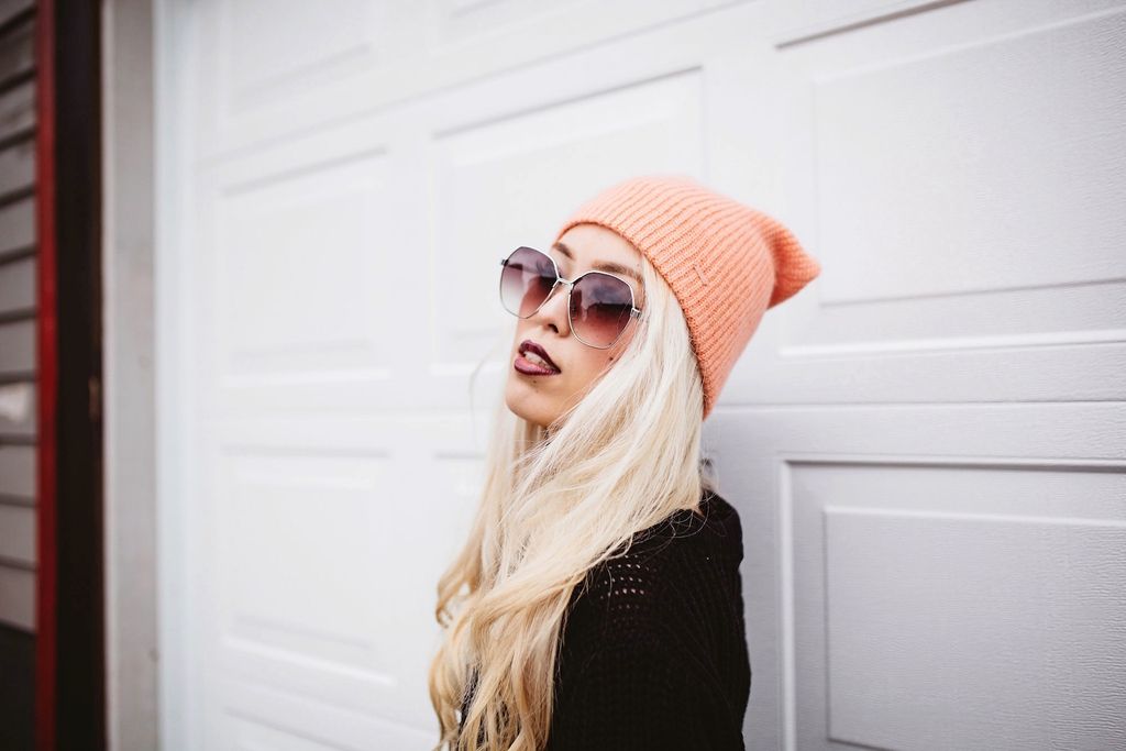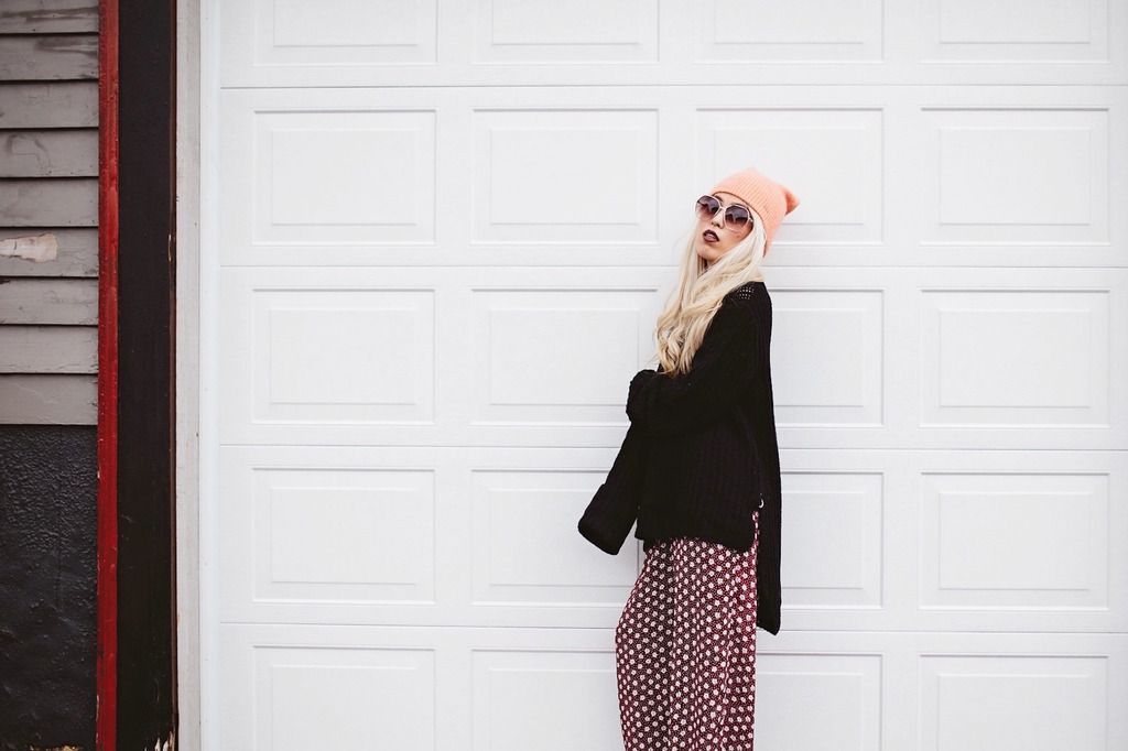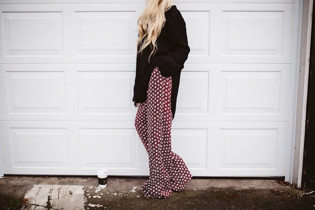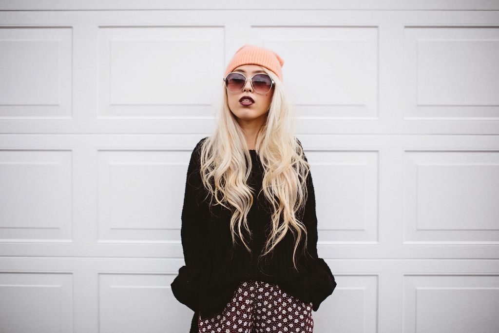 The sweater is amazingly snuggly, and I am in love with the shorter helm & large rolled cuffs - like "Look Ma! No hands!" These wide leg pants are also very soft, yet are a bit of oversized for me. I managed to nail them by wearing platforms hidden under the pants! They are high-waisted, so it gives the effect of elongating the legs which I don't look super short! That's what I love about wearing them! I was inspired by those awesome floral wide pants to complete my look with a hint of 70's vibe by paring an oversized sunglasses, and then keep it warm with a soft coral beanie as a playful touch because the warmer, the better!!!