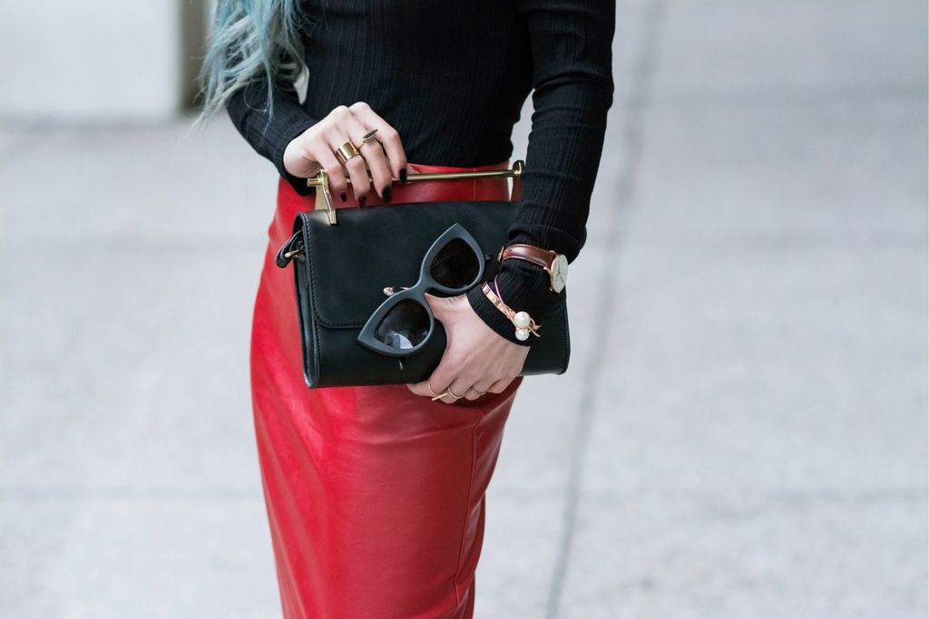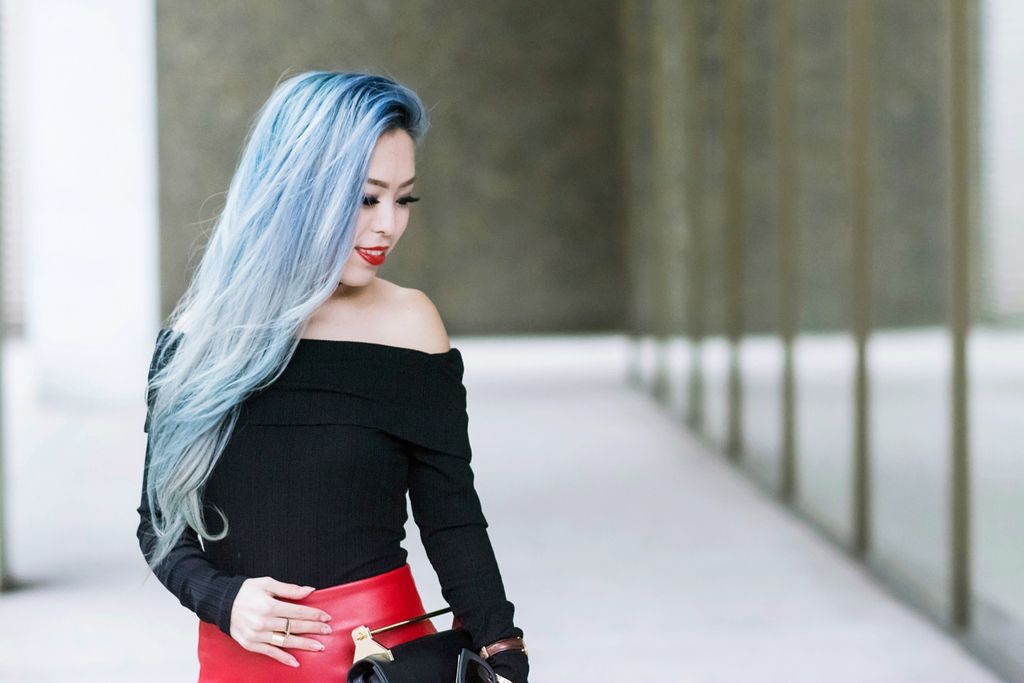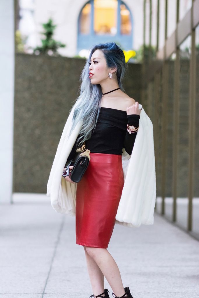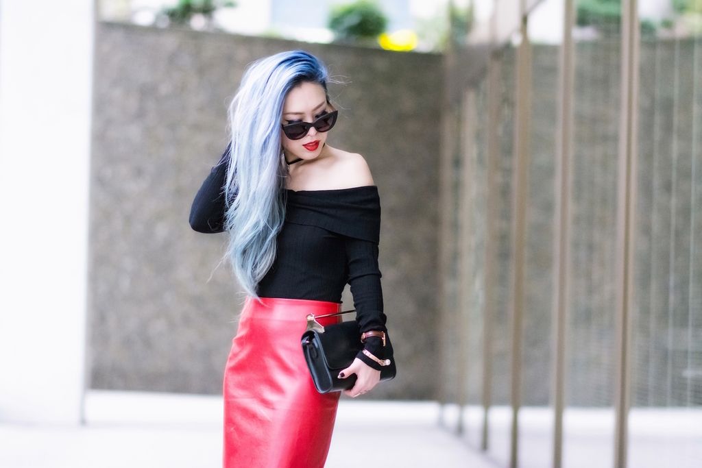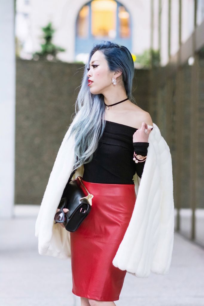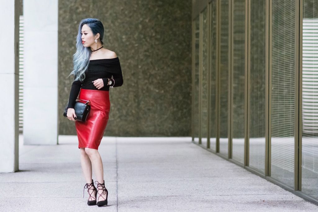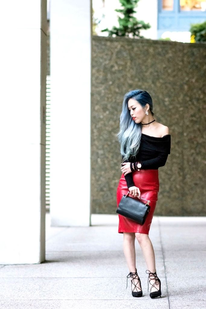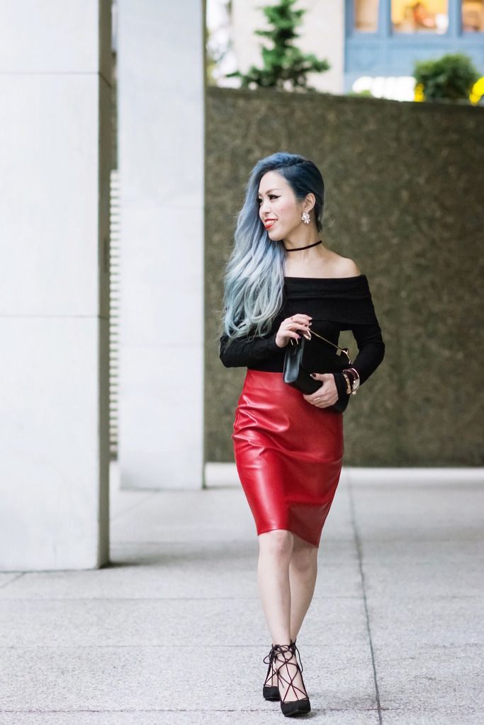 An off-the-shoulder tops is an amazing option for any special occasion.  It's so appealing, and I personally love wearing it so much. It doesn't really show in the look, but this one is a bodysuit version, and I am in love with it! Especially now, with the lingering winter chill! I paired it with a red faux leather midi skirt, to give it the V's Day vibe. Plus it adds a lot of femininity! Finishing it off with black details such as this clutch/crossbody bag & lace-up heels, helps it look more chic and classic. This look definitely works for any kinds of date nights on Valentine's Day - a romantic dinner with your significant other, a fun girl's night with your besties, or a relaxing stay at home date night with your love ( just switch the skirt out for anything comfy! ;) )  Currently, I am a sucker for rocking a look with a choker rather than gorgeous statement necklaces! I literally wear it all the time!! Not to mention, it's so cute with the off-the-shoulder top!