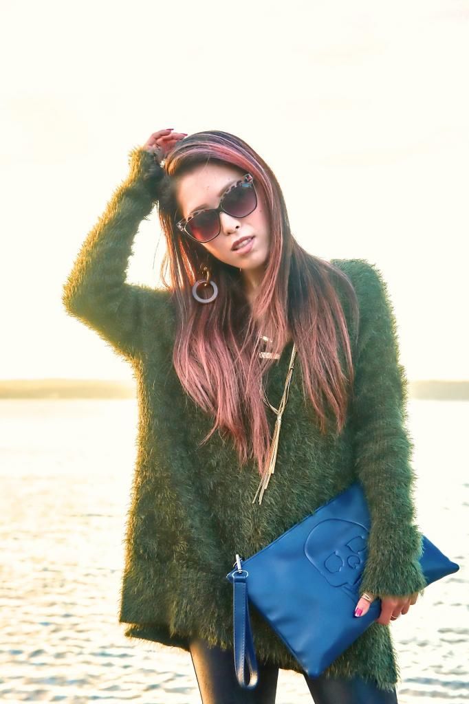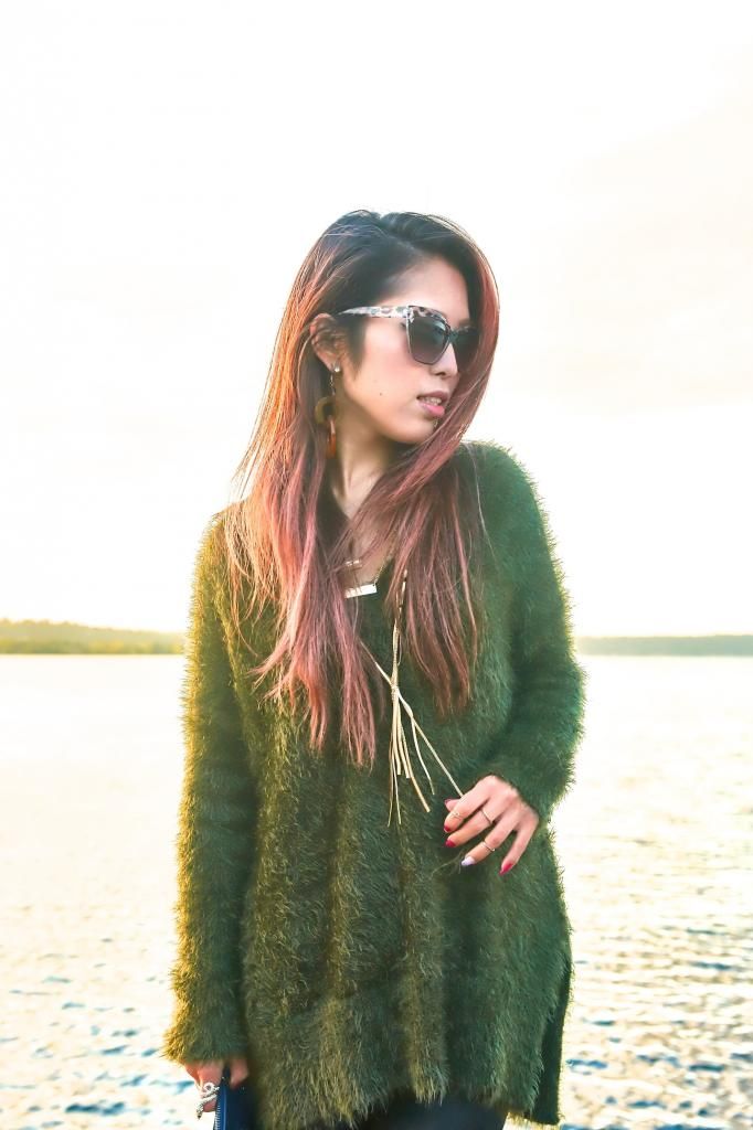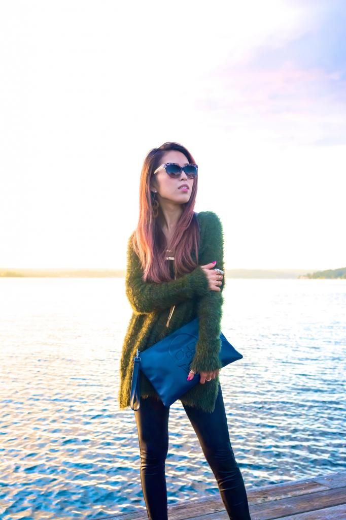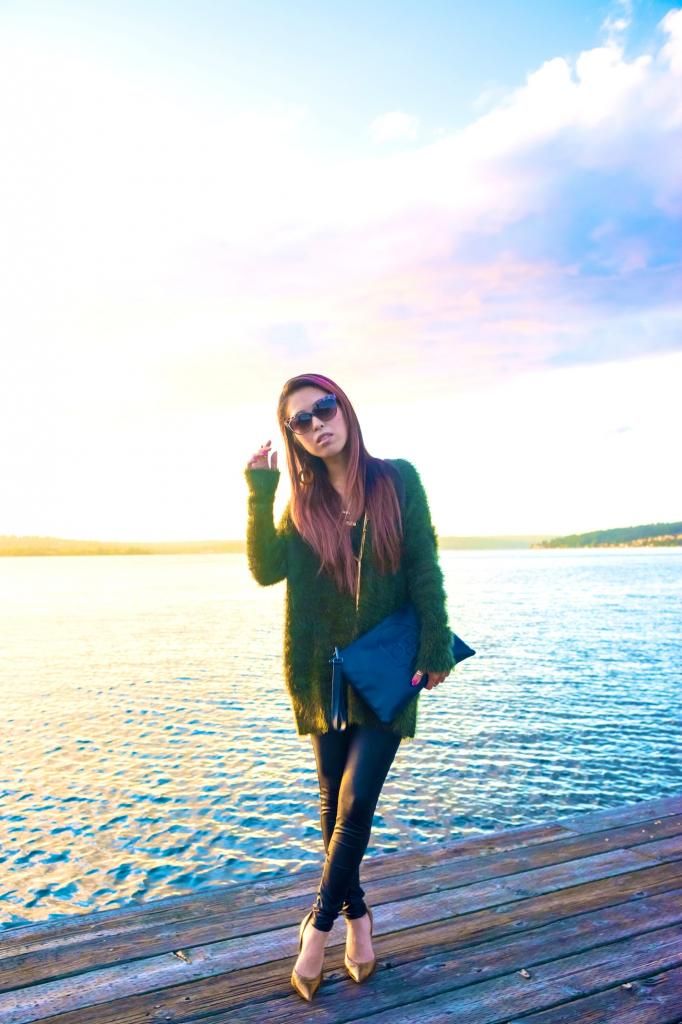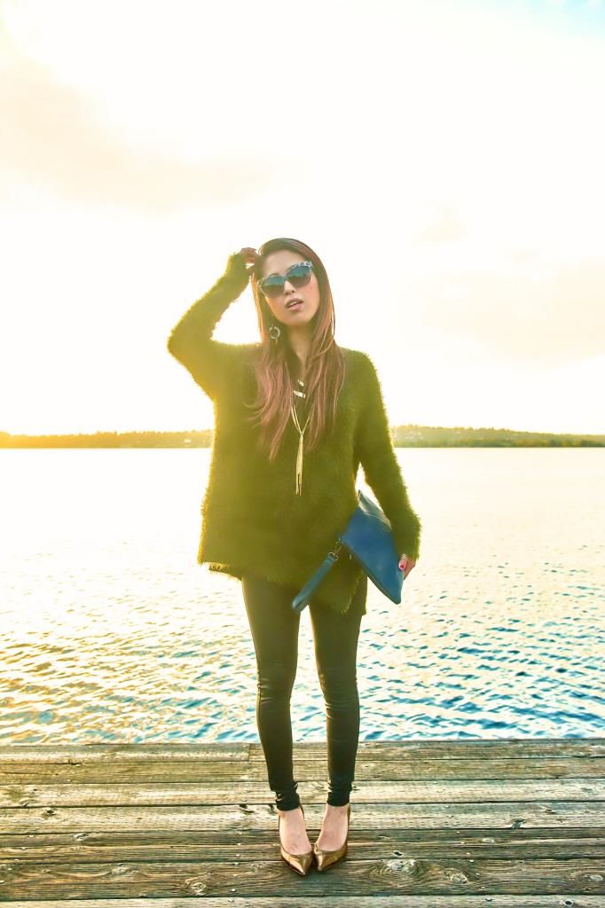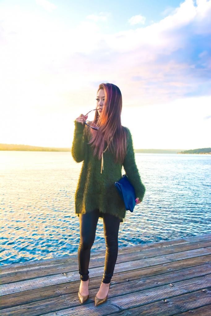New autumn season means new knit hunting! I got this comfiest fuzzy knit last month at H&M, and I've been seriously in love with it! The comfortableness is just mind blowing. No lies, I can sleep in this! I love how this knit could be worn in dress up and dress down. When I attended the Seattle's big fashion show, Downtown Seattle Rocks the Runway, I styled it up with a lace midi skirt and floral sandals, accessorizing in some gold jewelry. And this time I wanted to go for a laid back style to enjoy the beautiful sunny day so I chose leggings and gold pointy pumps. To me, paying a little attention to add some accessories is a key to polish a look. I can't walk out the door without a single accessory forgotten. I appreciate that mixing in gold jewelry offers the right amount of accent to this simple look, and even looked better with the gold sky.
