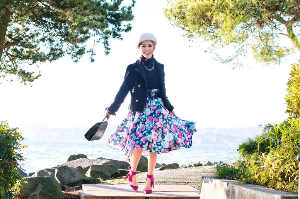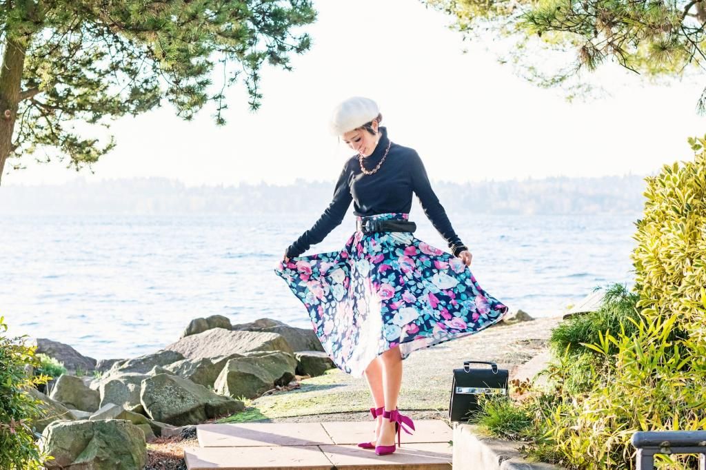 I wore this outfit a few weeks ago on Thanksgiving, and I would love to wear this again with a few twists added when I attend a holiday party or celebrate the holidays! I love dressing up more girly during this season. It boosts my inner femininity and helps me smile more! A fun printed midi skirt and delightful party shoes are definitely a great combo for any occasion, day or night, and I haven't worn such an eye-catchy vintage skirt for quite some time. Look how lovely it is! I feel a little wasteful because I had forgotten that I had this skirt in my closet, haha. So glad to bring it back to life!