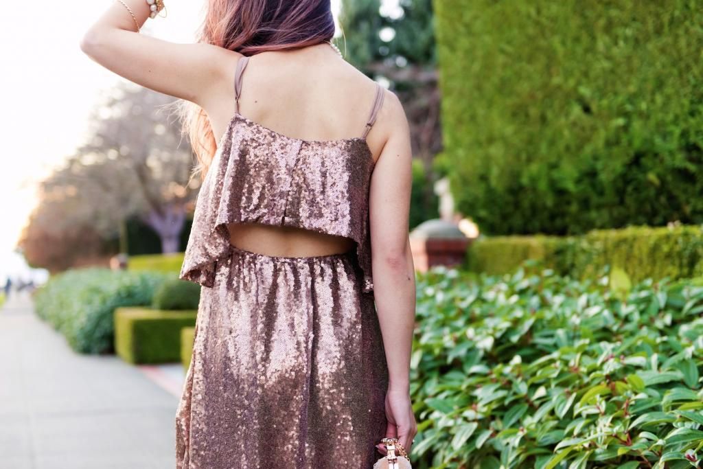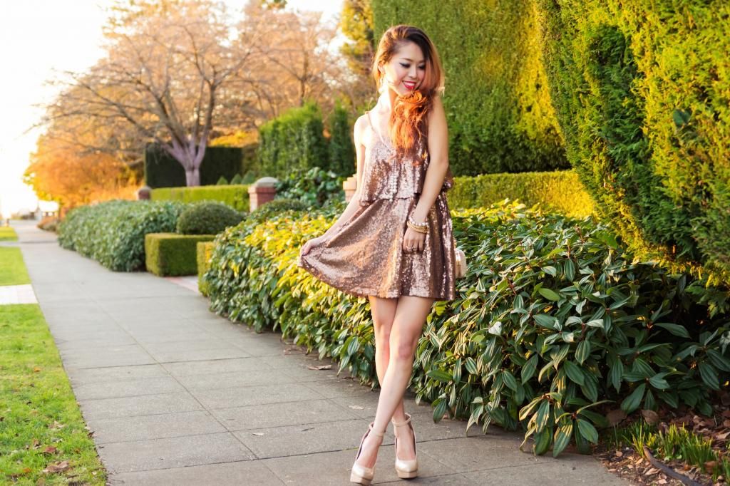 I can't get enough of how the dress instantly changes with the fur vest over it. Without it, it looks very playful and fun, showing the little glimpse from the back. But then once the fur best is put on, the dress is elevated to a sophisticated look with an elegant touch. I wanted the dress very pop, so I decided to put other things together with a neutral color theme. I always opt to pick up platform shoes for party looks and recently got this platform nude pair from ShoeDazzle. Nude heels are always an amazing option when you want the main garment more standout. Of course they give you an lovely illusion of elongating your legs!