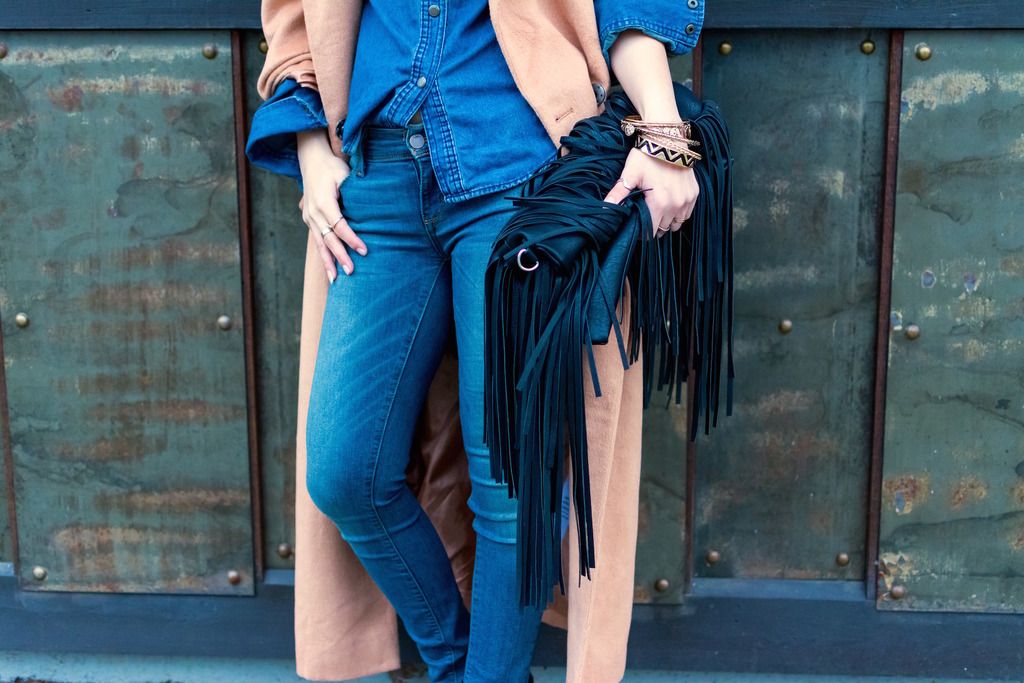 Since the festivity mood is floating everywhere, I was inspired to wear festival-ready accessories to finish the look. A peacock earrings, a beaded necklace, and of course a fringed bag. They are definitely spice up the look!