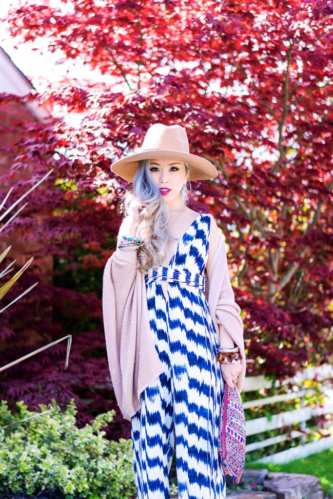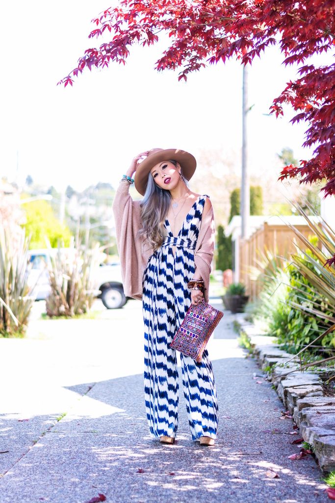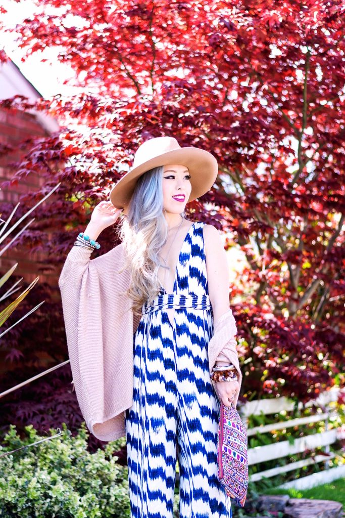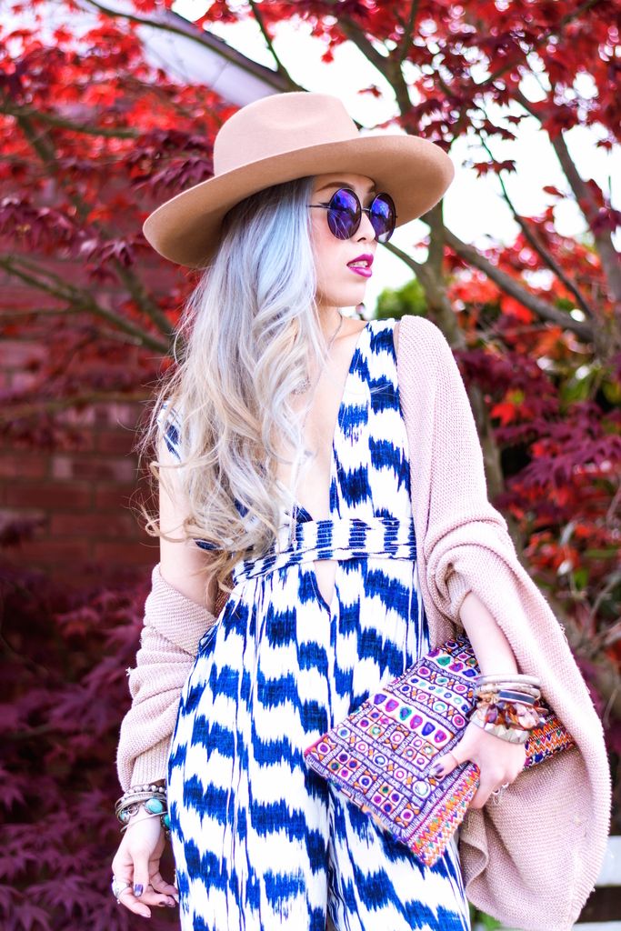 JUMPSUIT: Forever 21 (sold out, adore this, this or this) // CARDIGAN: BB Dakota // HAT: ASOS // CLUTCH: Gifted (similar here or here) // NECKLACE: Rebecca Minkoff // EARRINGS: JJ Caprices (use AIKASLOVECLOSET for 15% off of your order) // RINGS: Forever 21, Fresh Tangerine