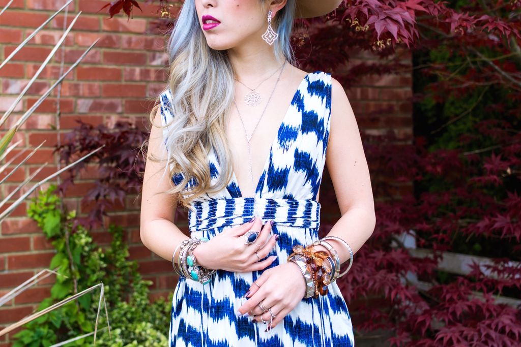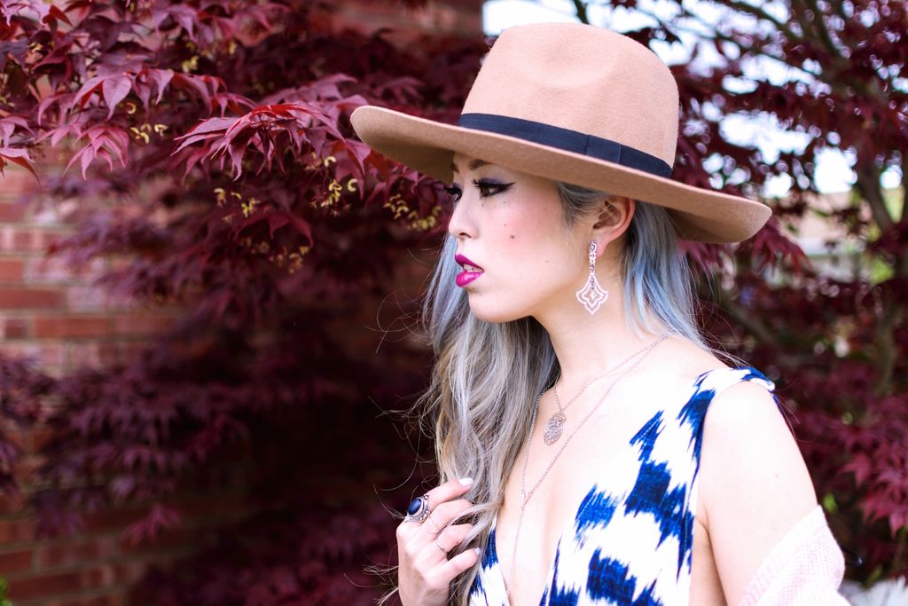 I decided to layer it with an oversized cardigan and my all-time favorite camel hat. I tend to glam up by wearing stacking bracelets as the weather gets warmer and the skin is shown. It's fun to mix and match with what you have already and new accessories. Plus, the outfit never looks so plain. I've been in love with my new "Jewel Box" Y-neckalce from Rebecca Minkoff. It's not a bold statement piece, but it's definitely something you can wear on daily basis from day to night.