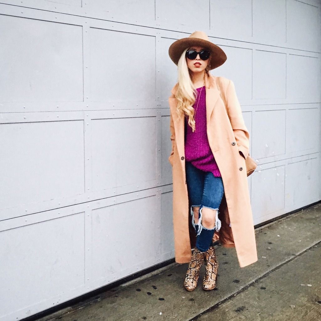 Got these awesome python ankle boots from MANGO! They inspired me to wear all camel (mostly! haha ) look on a rainy day!
